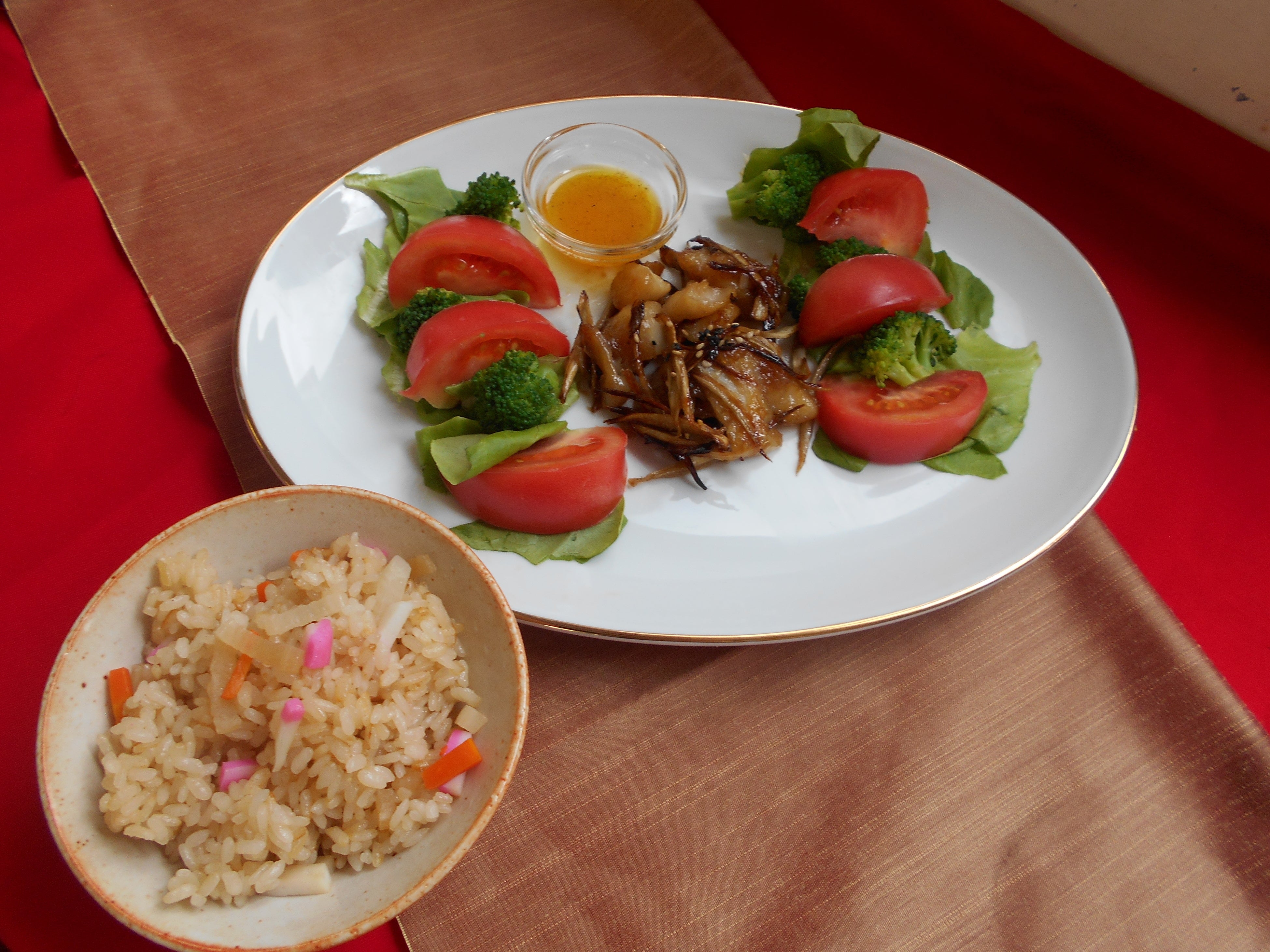 授業を通して何度も調理実習を共にしてきた仲良しチームが、子供たちでも食べやすい食材を使った郷土料理を作ろうと決意してアレンジレシピを編み出しました。山口県民のソウルフード「チキンチキンごぼう」をカレイを使った柔らかな「魚魚ごぼう」にすることで、食べやすさを工夫しました。