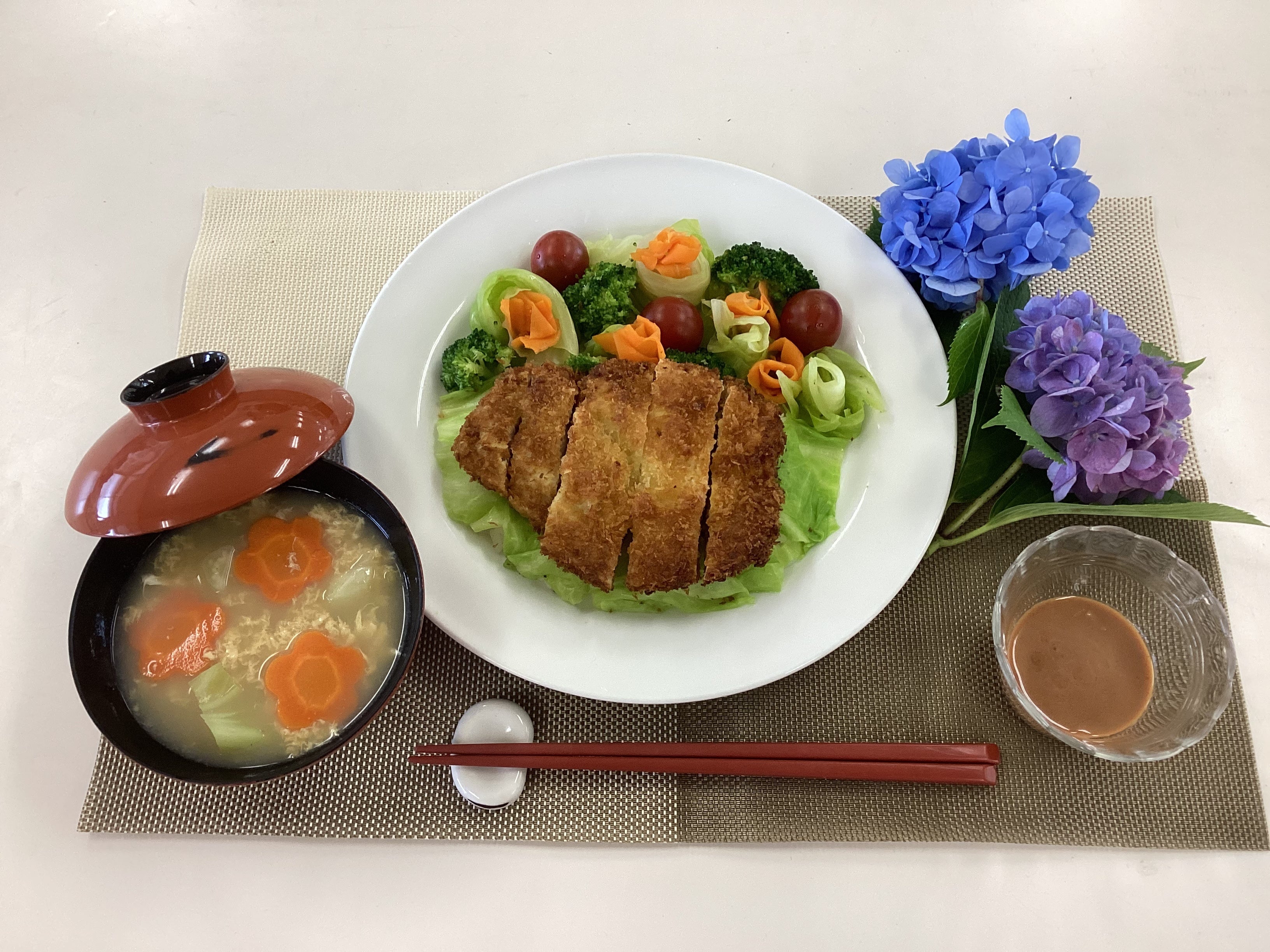 フードデザインの授業を通じて郷土料理に興味を持ち、試行錯誤を繰り返しながらアレンジレシピを考案。兵庫県加古川市周辺で親しまれる郷土料理「かつめし」を健康的にアレンジした鮮やかな一皿です。