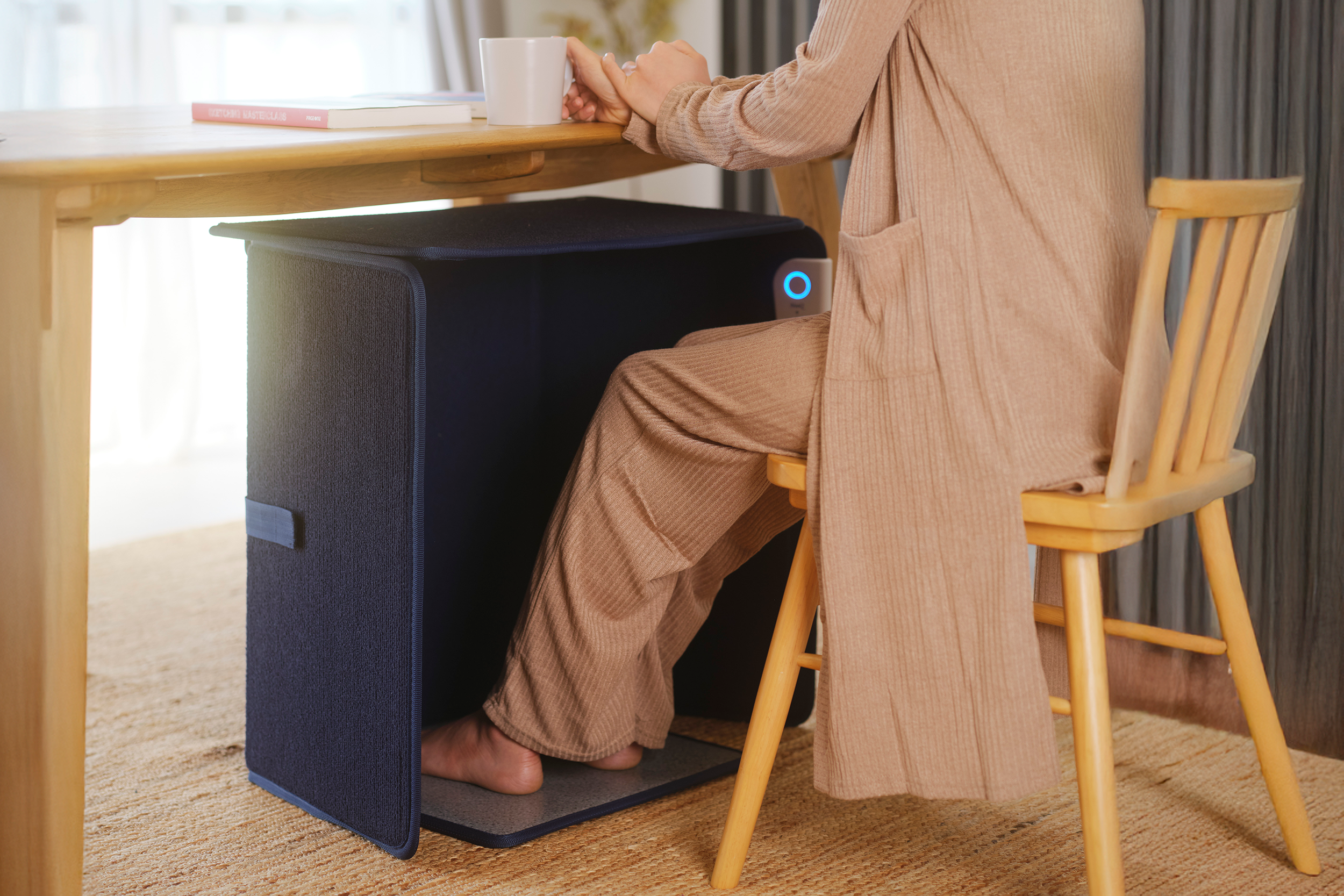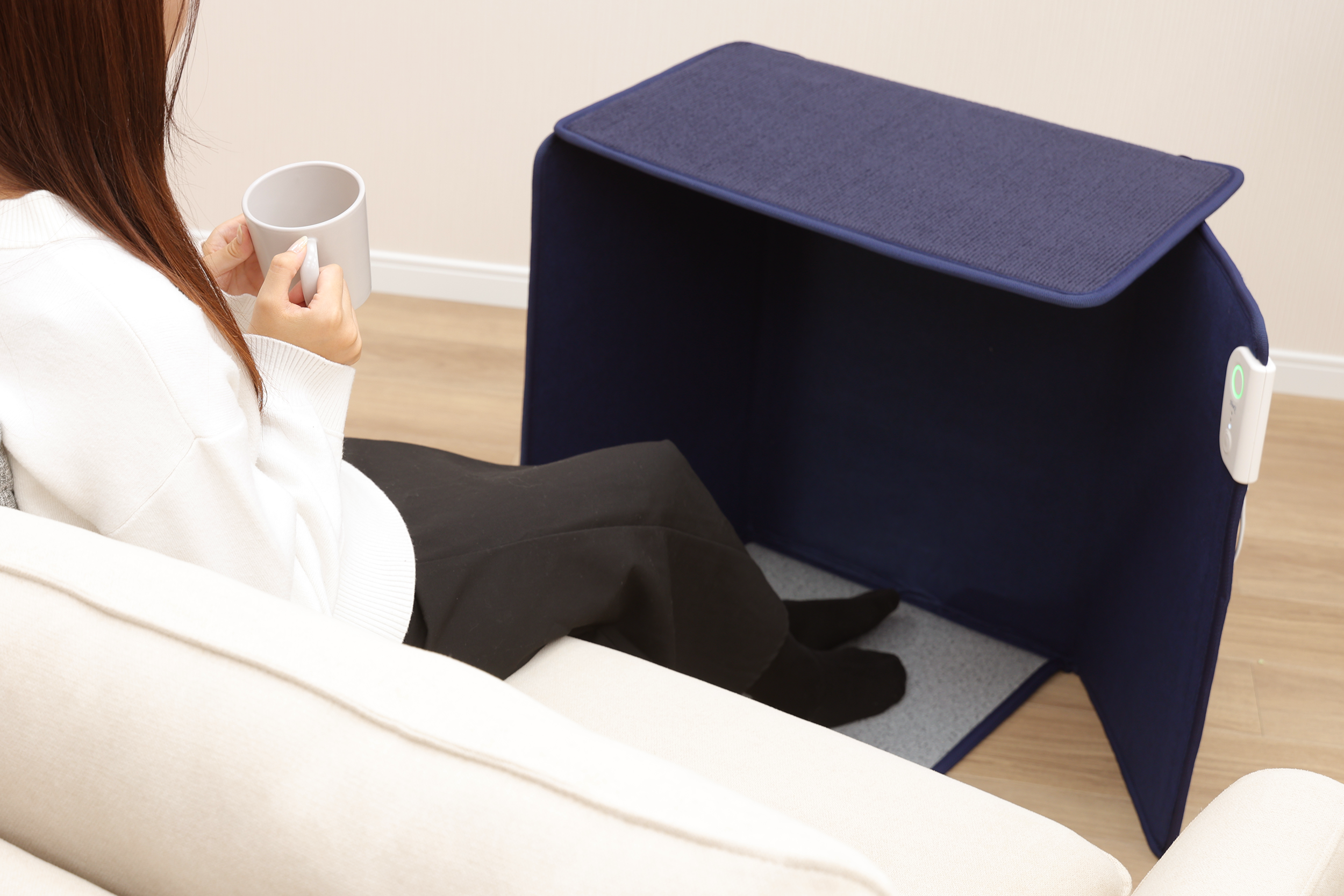 リビングでも、デスクでも、キッチンでも、冷えてしまいがちな足元から身体全体を温めます。