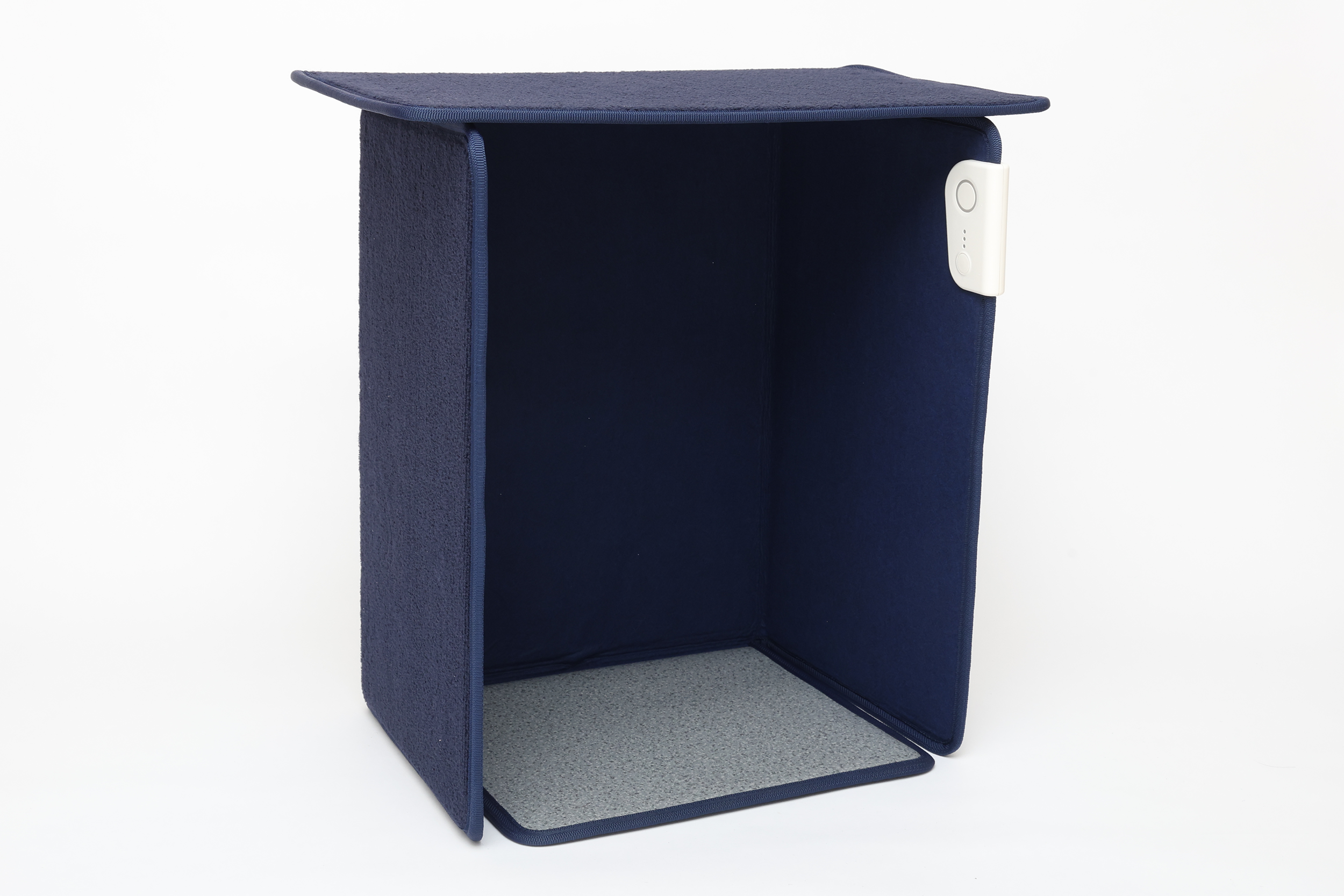 ぬくもりを逃さない“床面ヒーター+天面フタ”(5面タイプ)5面タイプは床マットと天面フタが付いています。下にはヒーターが搭載されていて、床からの冷えを抑えます。天面にはフタを被せることができて上への熱抜けを抑え、足元を包み込むように温めます。