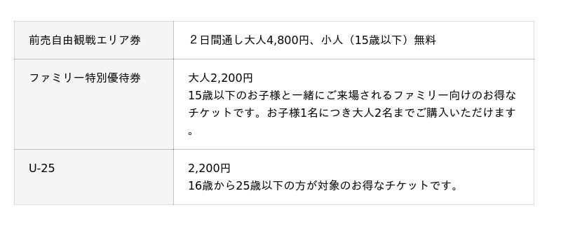 ※有料チケット1枚につき、当日場内の飲食テナントで使用できる1,000円分のミールクーポン(お食事券)が付いています。