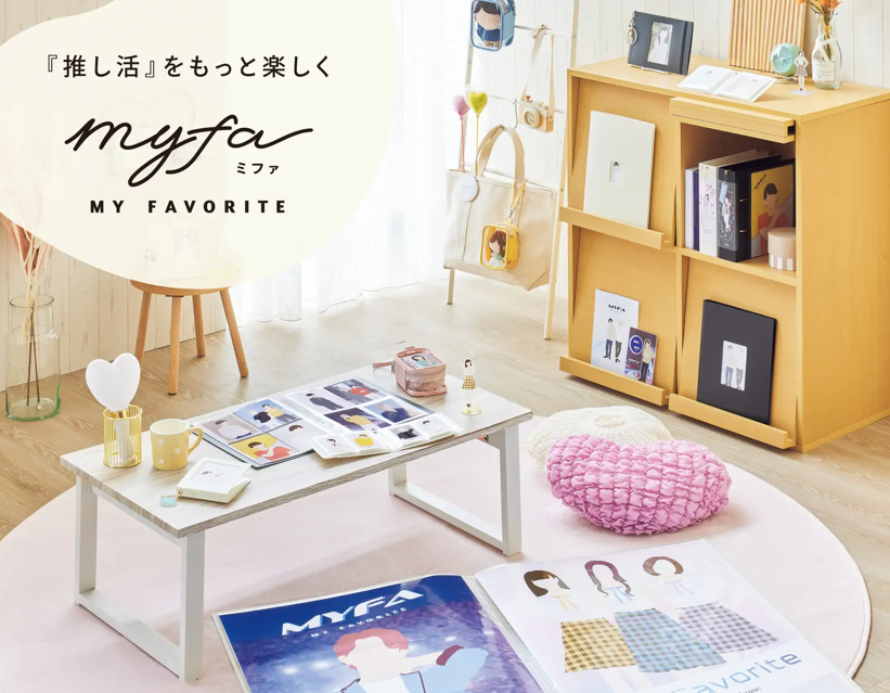『推し活』をもっと楽しくするmyfa (ミファ)シリーズ「スクエアフォト」「インスタントフォト」や「推しぬい 」「B2ポスター」 など 、文具メーカーならではの整理収納ノウハウを盛り込んで、推しグッズ収納に”ちょうどいい”をラインアップ。増える推しグッズをしっかり収納して、楽しい『推し活』をサポートいたします。