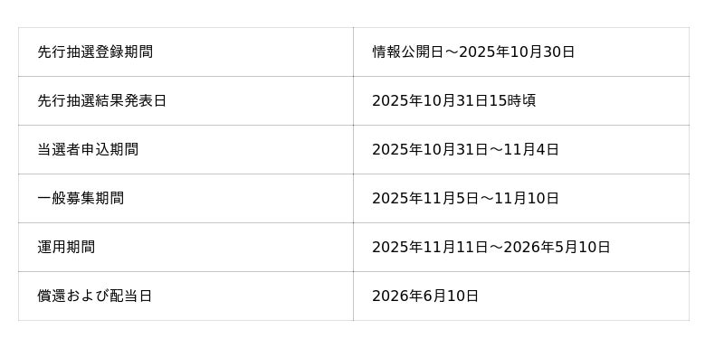 また、両ファンドは2025年11月5日(水)18時より、先着順にて同時に募集を開始いたします。