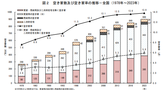 ※1 総務省「令和5年住宅・土地統計調査」(令和6年9月公表)空き家数及び空き家率の推移-全国(1978年~2023年)