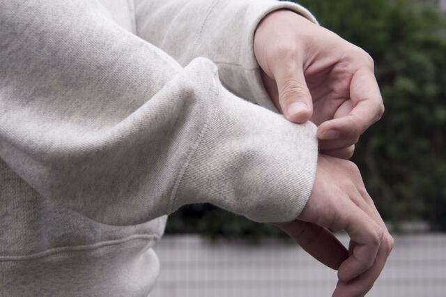 裾、手首のリブの締め付けも強すぎず快適な着心地です。