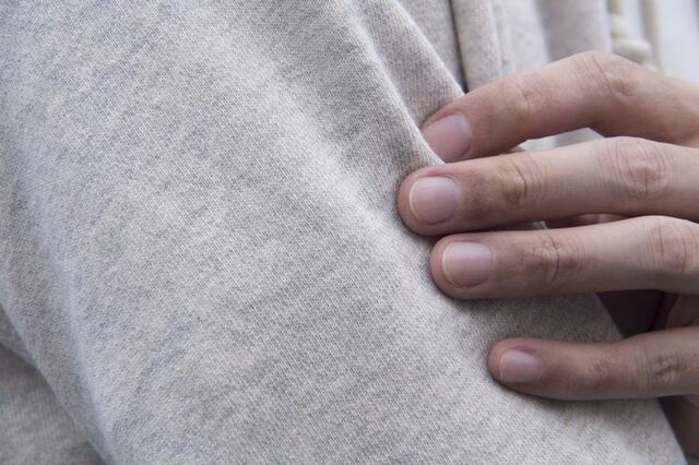 ループウィール編み機(吊り編み機)を使った、昔ながらの製法で編まれた生地のやわらかな風合いともっちりとした肌触りが気持ちいいんです。