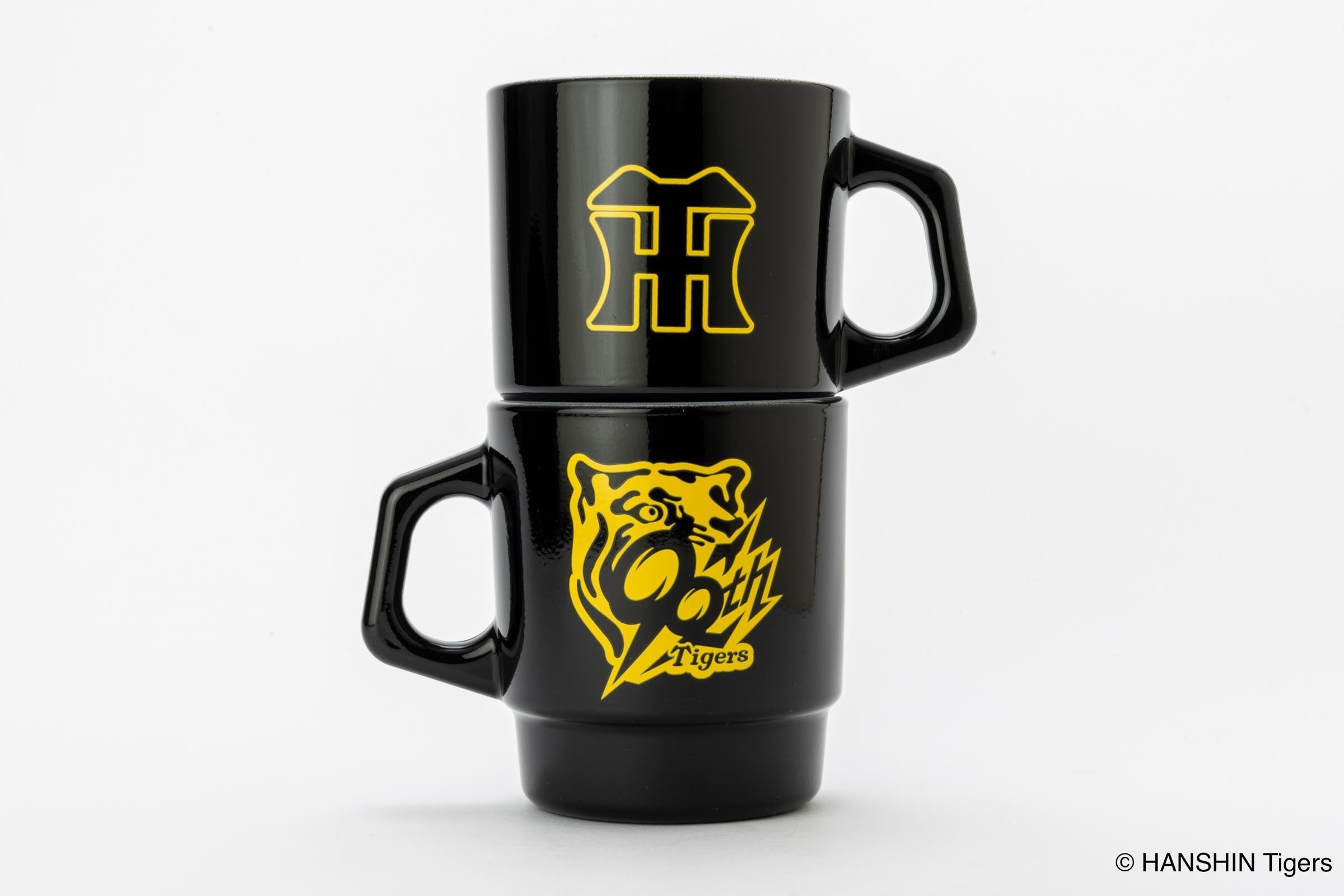 マグのもう一面には、球団創設90周年、2025年シーズンのキャップをイメージして、ブラックカラーの阪神タイガース“HTマーク”をイエローの縁取りでシンプルに配しています。