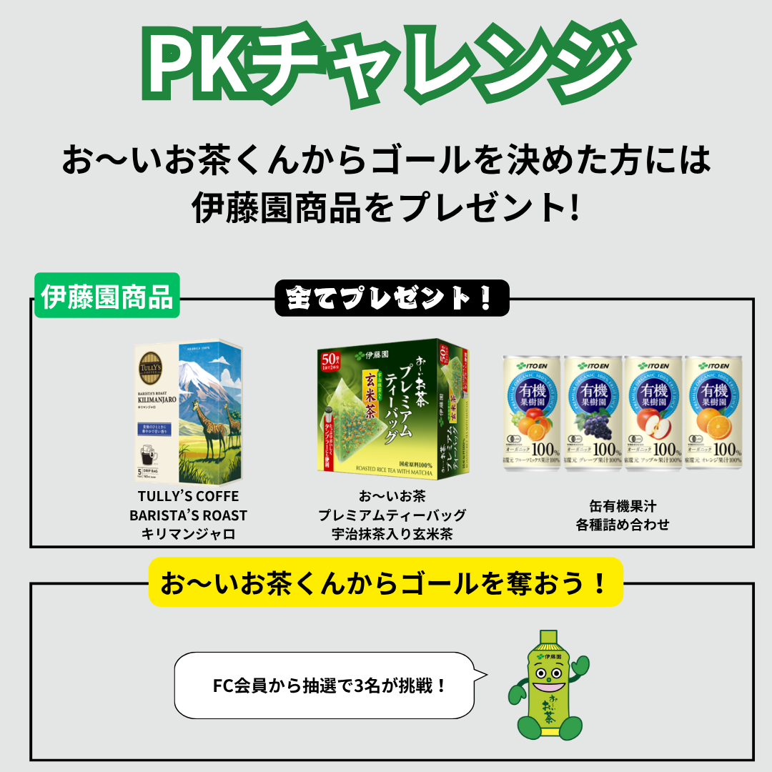 GKのお~いお茶くんからゴールを決めて伊藤園商品3種セットをゲットしよう。