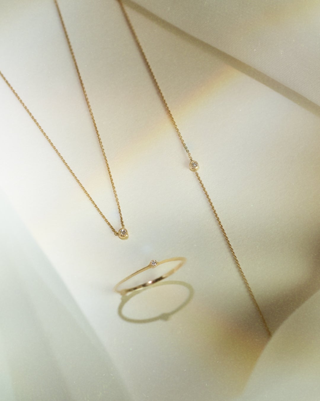 毎日愛着を持って身に着けられるよう、プチサイズのダイヤモンドをシンプルなデザインで仕立てました。