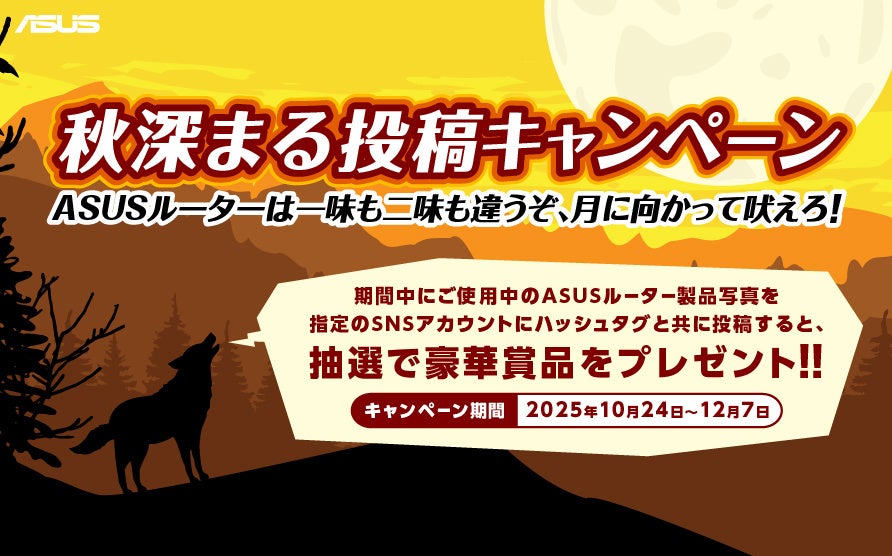 ASUS JAPAN株式会社は、ASUSルーターをご愛用中の皆様を対象としたX(旧Twitter)キャンペーンを2025年10月24日より開催いたします。本キャンペーンでは、期間中に指定SNSアカウントへASUSルーターに関する写真を指定ハッシュタグとともに投稿いただいた方の中から、抽選で最新WiFi7ルーターなど豪華賞品をプレゼントいたします。
