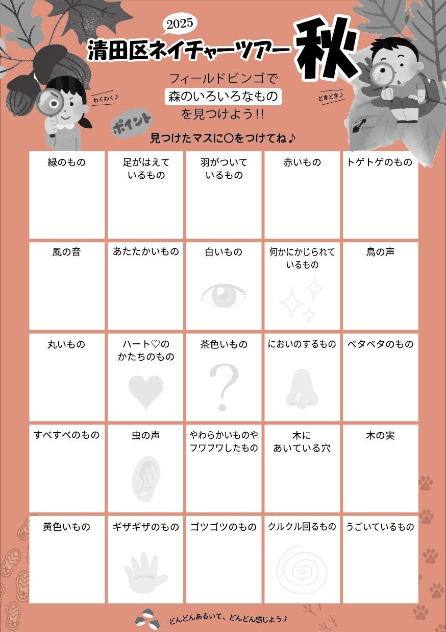 <ツアーの名称>清田区ネイチャーツアー「秋」~フィールドビンゴ 森のいろいろなものを見つけよう~