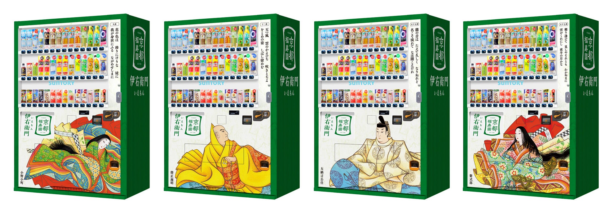 サントリー食品インターナショナル(株)は、“京都”をブランドの原点とするサントリー緑茶「伊右衛門」にて、京都市の協力のもと、京都観光の混雑緩和に向けた取り組みである「巨大かるた自販機を探そう!キャンペーン」を、11月1日(土)~12月14日(日)に実施します。