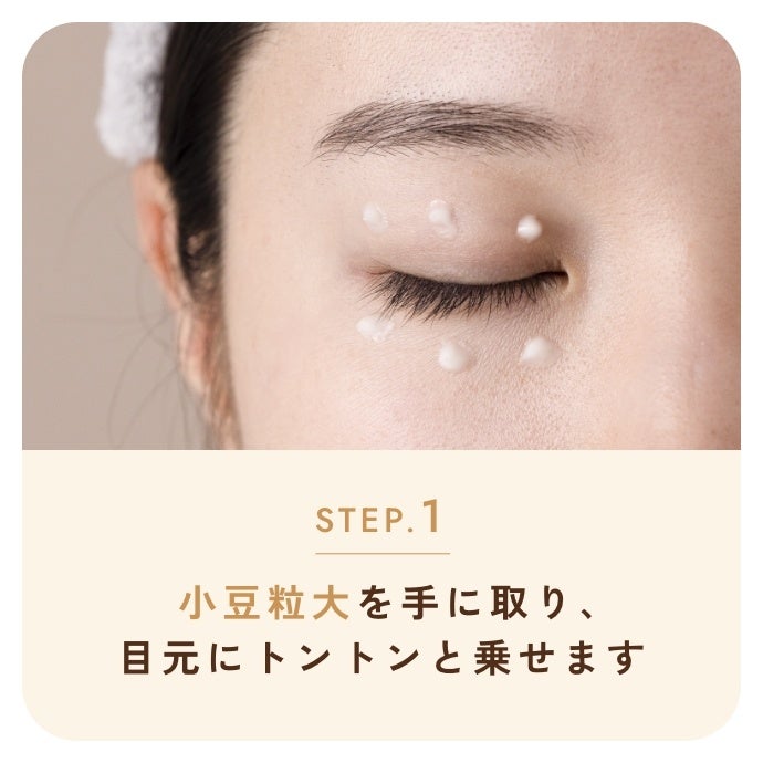 *1 全方位ケアとは目元の乾燥、乾燥小じわ(乾燥による小じわを目立たなくする(効能評価試験済))、くすみ(乾燥による)、ハリ、クマ(マッサージによるケア)に対するケアのこと