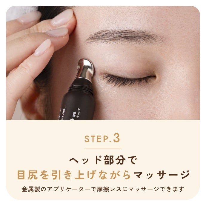 Point.3 摩擦レスでマッサージデリケートな目元を優しくケアできるよう、金属製のアプリケーターを採用しました。ひんやり心地よいマッサージで、美容液の浸透*¹をサポートします。