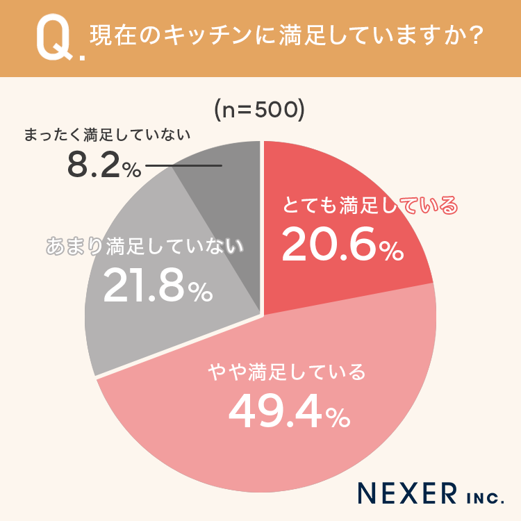 多くの人が「今のキッチンにおおむね満足している」と感じているようです。