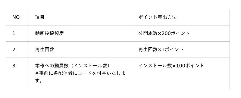 他のゲームや本作に関係のない内容の動画はポイント対象外となります。