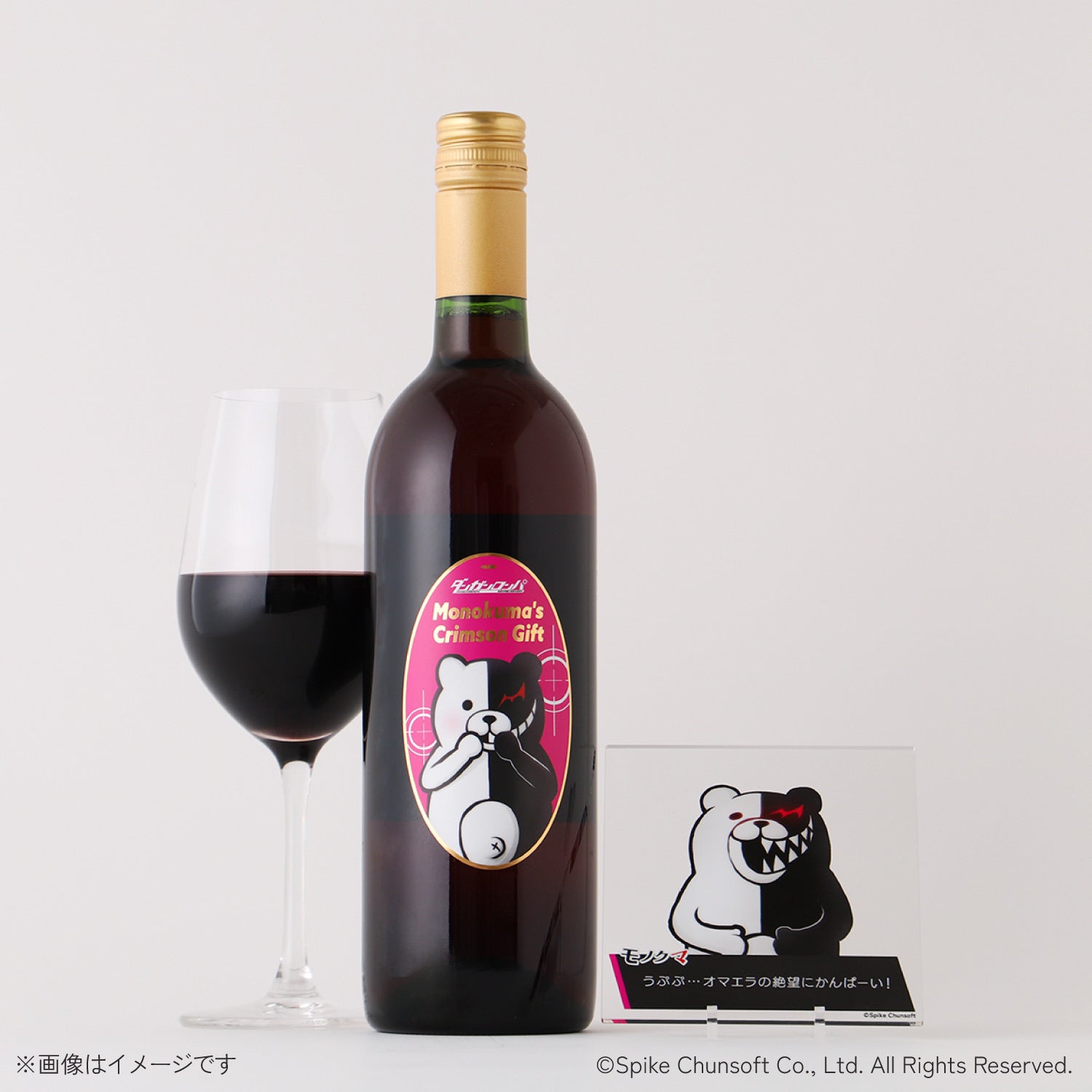 「希望と絶望の赤ワイン ―ダンガンロンパ―」は、ハイスピード推理アクションゲーム『ダンガンロンパ 希望の学園と絶望の高校生』の誕生15周年の記念に造った赤ワインです。ラベルにはゲーム内に登場するキャラクター「モノクマ」の赤い目をモチーフにしてデザインしました。味わいは、甘酸っぱい香りと軽やかな酸味が楽しめ、飲みやすい口当たりに仕上げています。