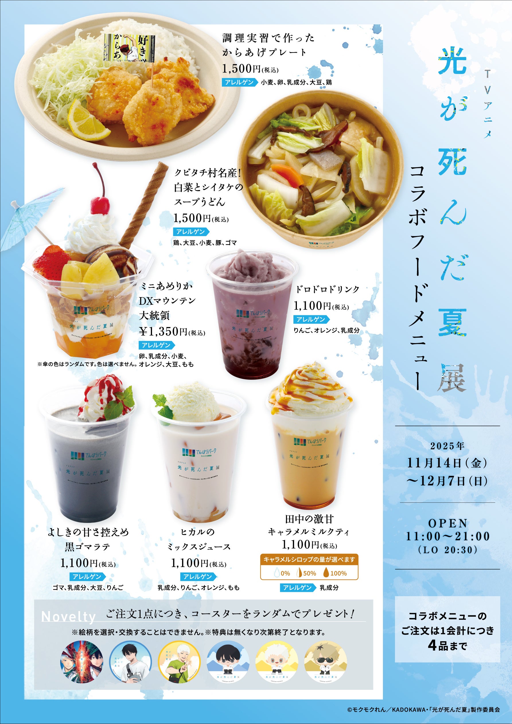サンシャイン60展望台 てんぼうパーク内にある「てんぼうパークCAFE」にてコラボメニューを販売します。よしき・ヒカル・田中をイメージしたコラボドリンクや作中にでてきたフードなどが登場!