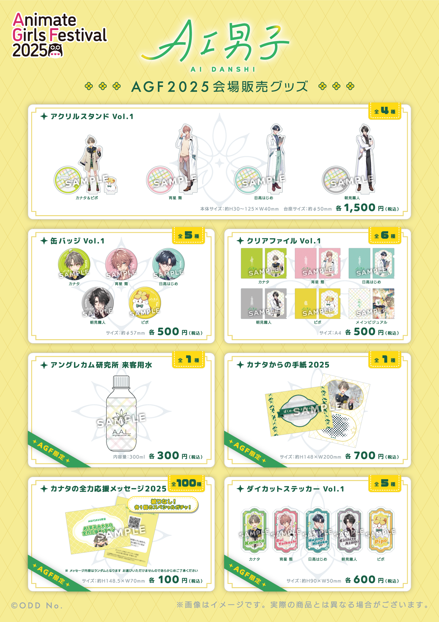 AGF2025でしか買えない限定グッズのほか、「AI男子」オリジナルグッズの販売を実施いたします。会場:池袋・サンシャインシティ Yellow AREA Y-1(展示ホールD)