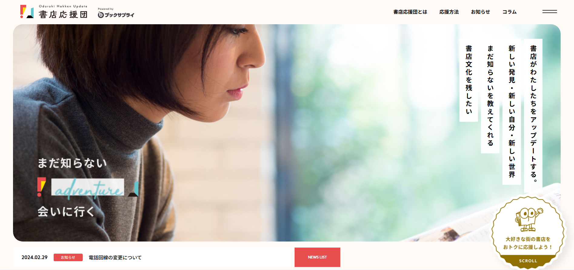 ブックサプライは、書店での新しい出会いを促進し、書店や本に触れる機会を増やすことを目指して、「書店応援団」を設立しました。