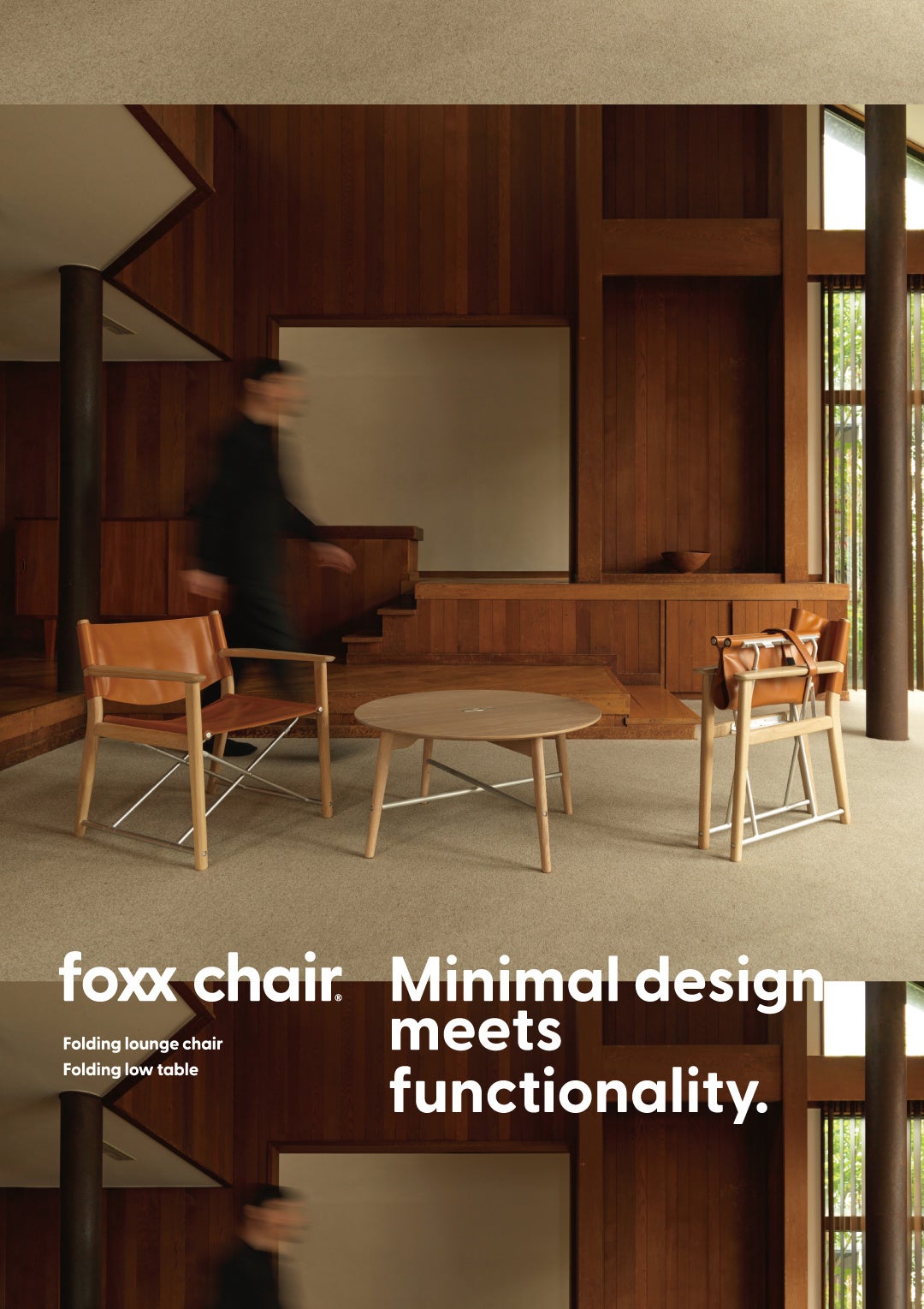 foxx chair(R) は、“自分だけのサードプレイス”を、自宅のどこにでも、本格的なくつろぎの場として再構成できる折りたたみ式のラウンジチェアです。折りたたみの構造にはブランド名でもある「ダブル×(XX)構造」を採用しました。