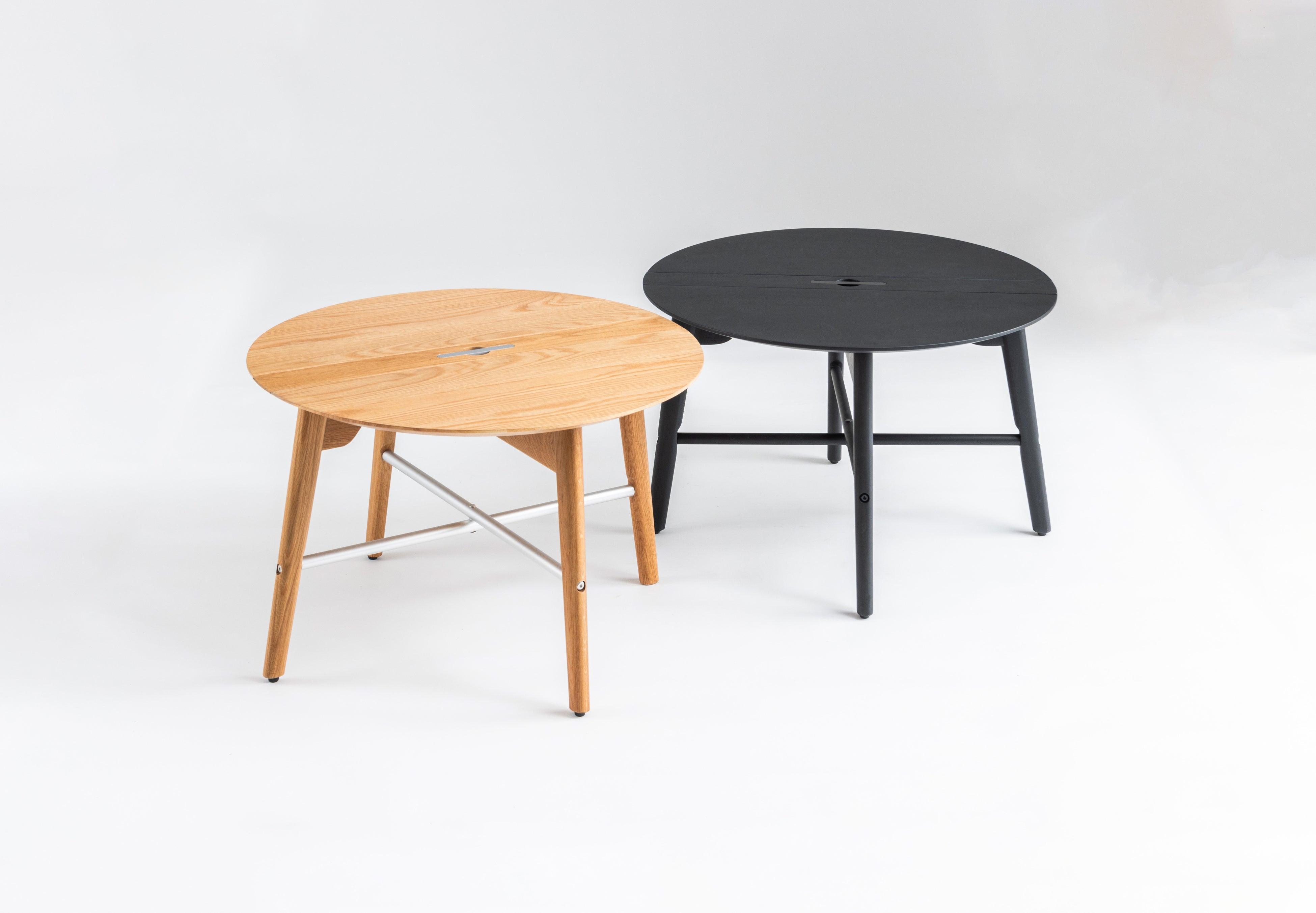 foxx chair (R) シリーズに、ブランドコンセプトはそのままの、サイドテーブルとラウンジテーブルが誕生。 クロス型の脚を内側に折りたたみ、天板を左右に分割してたたむ独自の構造により、動作は極めてスムーズで、わずかな手の動きで瞬時に折りたたむことができます。本体にはアルミダイキャスト製のハンドルを美しく組み込み、引き出すだけで片手でも軽やかに持ち運びが可能に。ラウンジチェアと組み合わせれば、どこでも自分だけのくつろぎ空間が完成。読書やティータイム、パーソナルワークのひとときを、より自由に、より優雅に演出します。・折りたたみで楽しむ贅沢