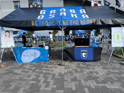 この日はステージイベントに加え、スタジアム入口付近にて健康啓発ブースを設置。チラシ配布や動画上映を通じて、来場者への情報発信を行いました。