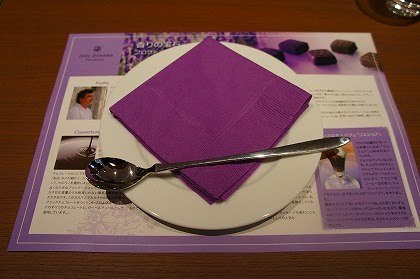 そのしたには天才シェフ、ジョエルデュランのプロフィールや素材について書かれた紙のランチョンも。