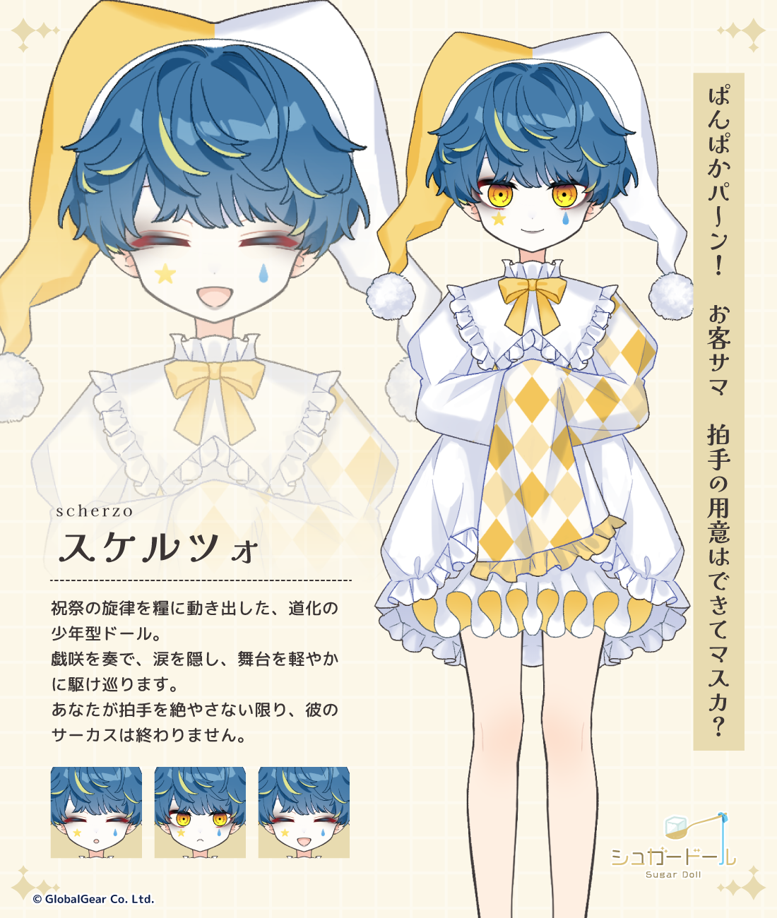 株式会社Sun Asterisk(本社:東京都千代田区、代表取締役:小林泰平、以下「Sun*」)は、グループ会社のグローバルギアがApp Store、Google Playにて提供中の着せ替え×育成ゲーム『シュガードール』において、道化をモチーフとした新規の少年型ドール「スケルツォ」を追加したことをお知らせします。