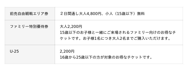 ※有料チケット1枚につき、当日場内の飲食テナントで使用できる1,000円分のミールクーポンが付いています。