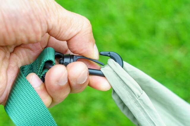 持ち手を固定するストッパーが結構小さくて、エコバッグの形状や素材によってはうまくフィットしない可能性も。薄い素材のエコバッグなら問題ないけど、厚手や補強されているような持ち手は注意が必要です。