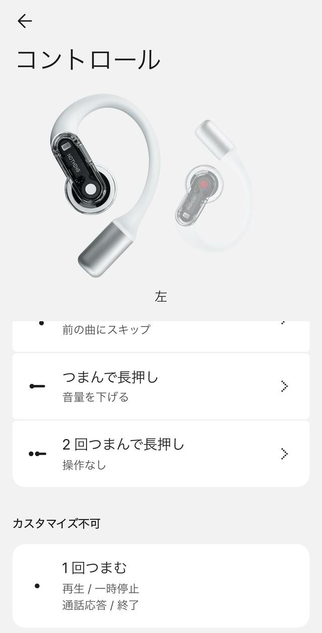 専用アプリ「Nothing X」でタッチ操作をカスタマイズできます