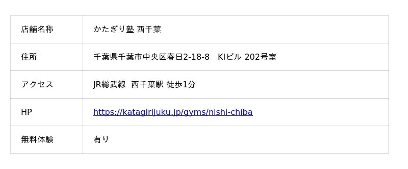 ▶︎https://katagirijuku.jp/gyms/nishi-chiba
