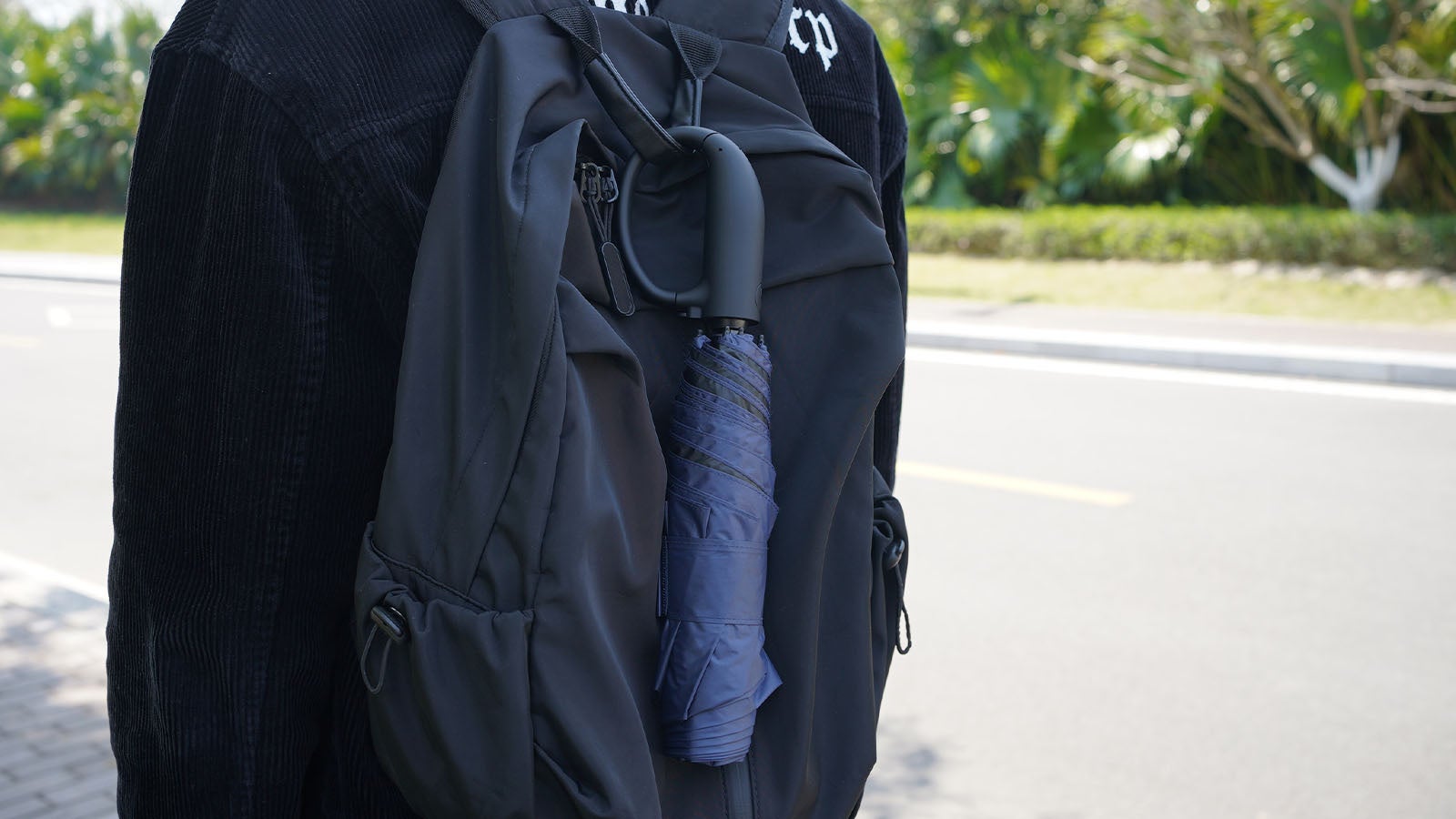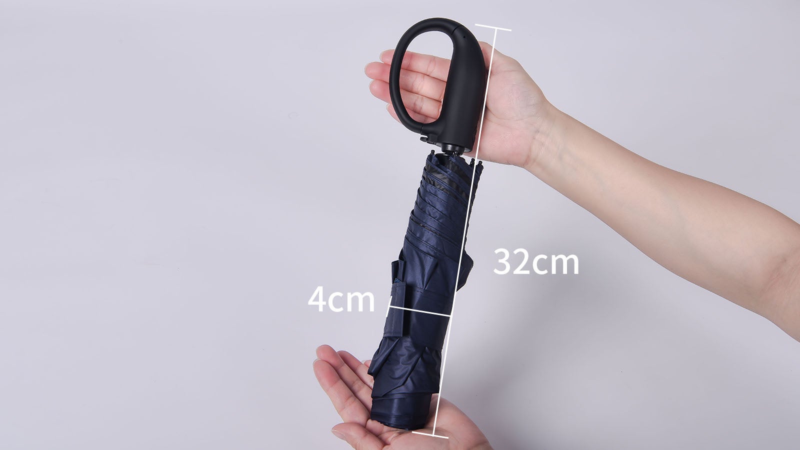 これは、500mlのペットボトルの約半分の重さに相当します。さらに、傘を広げた時の直径は約100cmと十分な広がりを持ちながら、折り畳むとたった33cmのコンパクトサイズに。これなら、カバンやスーツケースに吊るしても邪魔になりません。