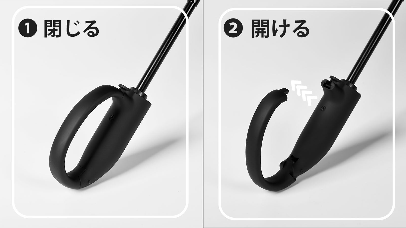 2.【スムーズな収納】ワンタッチ自動開閉!余計な力を入れなくてもシャフトを簡単に閉じられる。