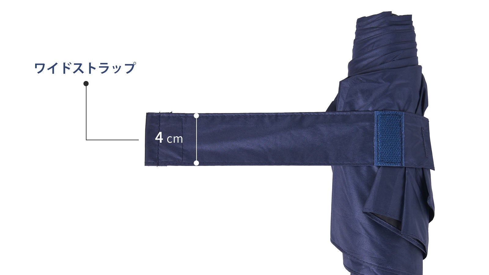 本製品では、従来よりも太めの巻き取りベルトを採用。これにより、傘布を簡単かつしっかりと巻き取り、コンパクトにまとめることができます。