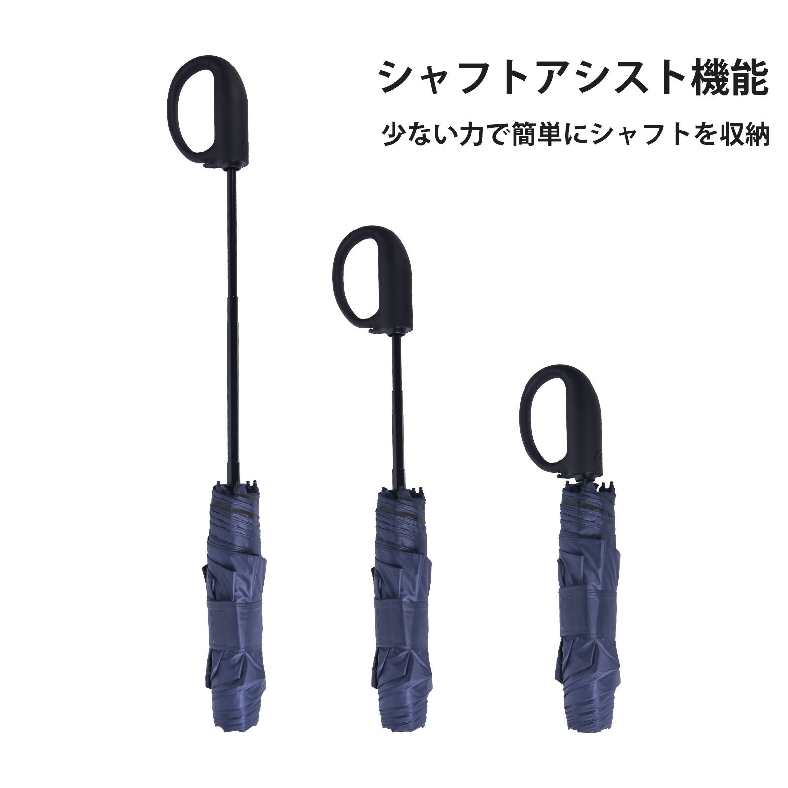 また、自動開閉機能に加え、便利なシャフトアシスト機能を搭載しており、少ない力で簡単にシャフトを収納できます。