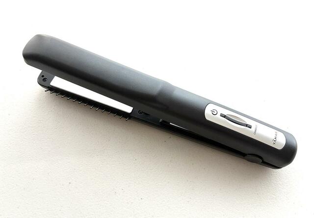 次に、馴染ませたあとの髪を「トリートメント導入器シャインプロ」で挟んで、根本から毛先までヘアアイロンのように通すだけ。