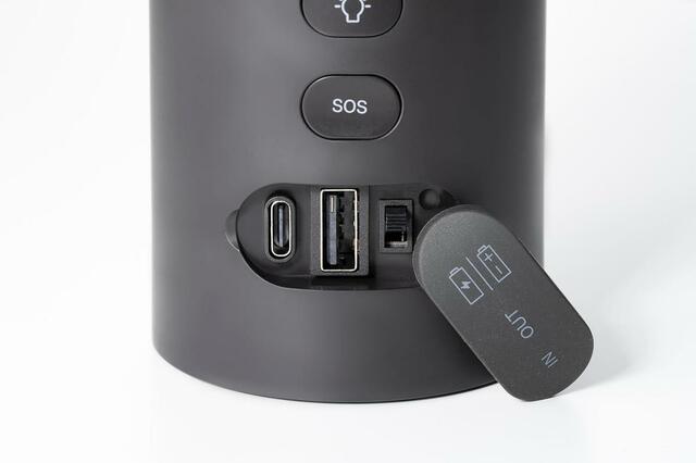 公式ページによると、ソーラーパネルのみの本体充電では満充電まで約10時間なほか、乾電池4本だとLEDランタンを約4.5時間連続使用できるというパワー。