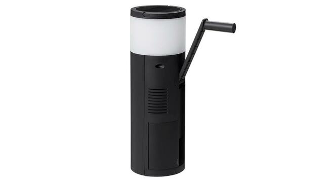 手回し充電ハンドルは側面に収納できるし、凹凸のない筒状の形だから、これなら出しっぱなしでも美しい。