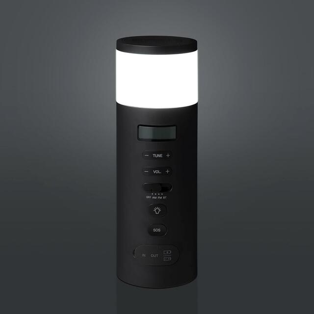 プラスマイナスゼロの「防災ラジオ」は、充電・給電、AM/FMラジオ、LEDランタン、緊急用SOSアラーム、Bluetoothスピーカーの5つの機能を備えたアイテム。