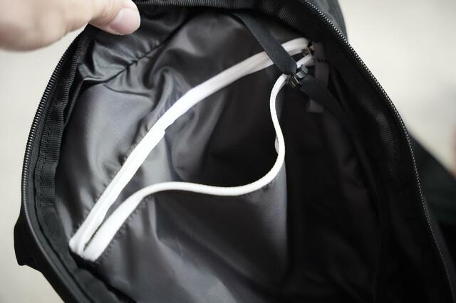 バックパックの中にも小さなポケットがあるので、鍵や財布、モバイルバッテリーなどの小物はこちらに入れておくと、見つけやすくなります。