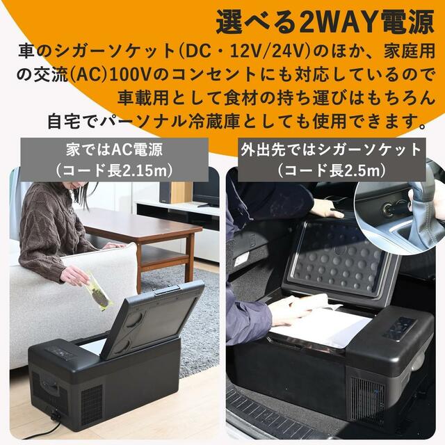 「AC/DC 2WAY 冷凍冷蔵庫(15Lタイプ)」の給電方法はACとDC電源の2種類に対応。