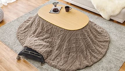 萩原、楕円形こたつ「Aurora」をクオリアルにて販売開始。掛け布団は4タイプ・計12種類から選べる