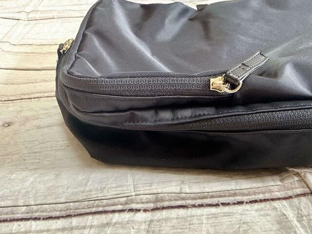 ショルダーストラップには薄いクッション入りで、長い時間背負っていても疲れにくい印象でGood!