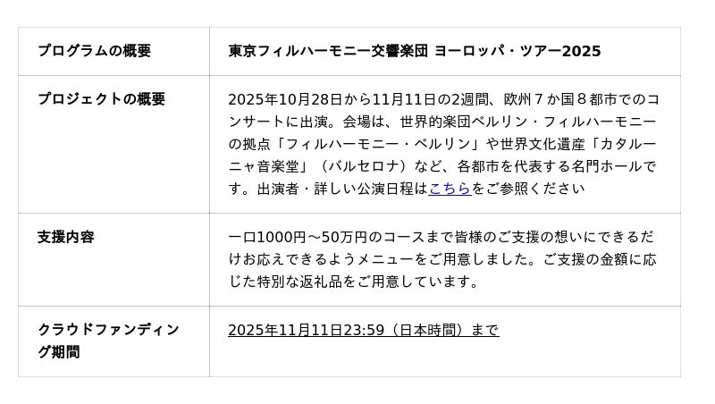♪東京フィル ヨーロッパ・ツアー2025 クラウドファンディングについて詳しくは