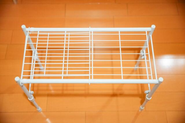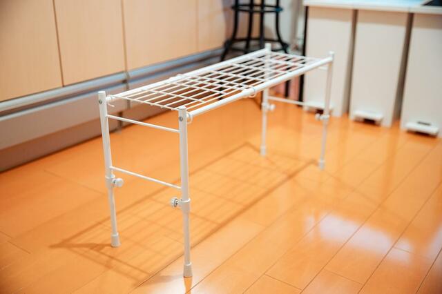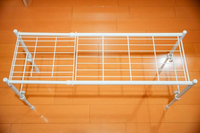 サイズは幅54~75cm、高さ29~41cm、奥行26cm。高さ・幅調整が効くタイプの収納棚になっています。