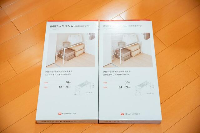 「縦」を上手く使うためにさまざまなアイテムを探した結果。平安伸銅工業の「伸縮スリム収納棚」が我が家の押入れにフィットしてくれそうだったので、お迎えしました!
