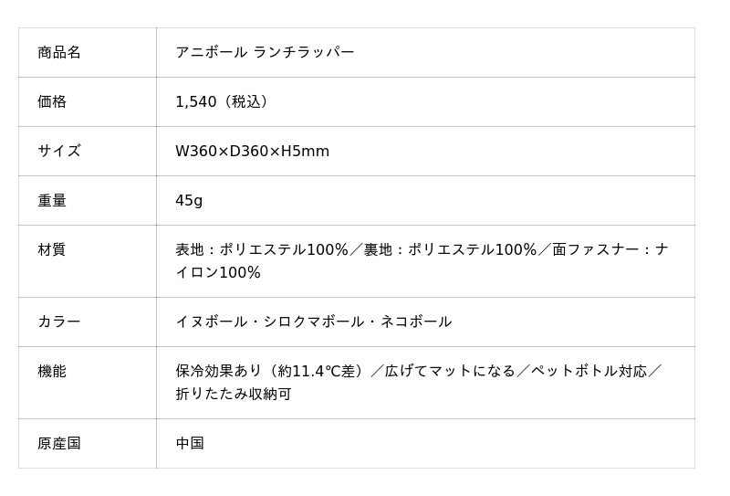 見た目のかわいさはもちろん、保冷・折りたたみ・ランチョンマットなどの実用性も充実。