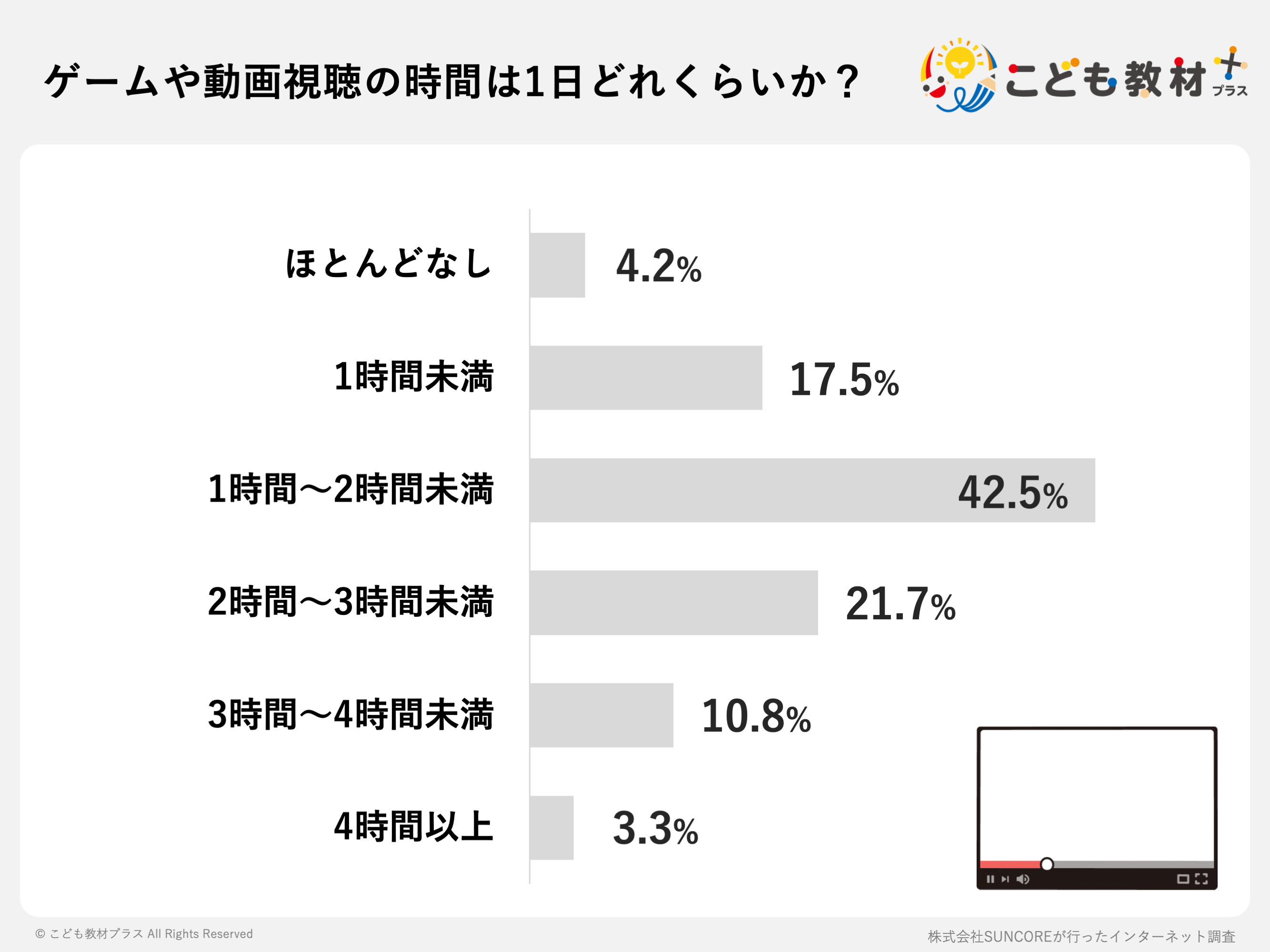 ゲーム・動画は「1~2時間」が最多も、勉強と両立か